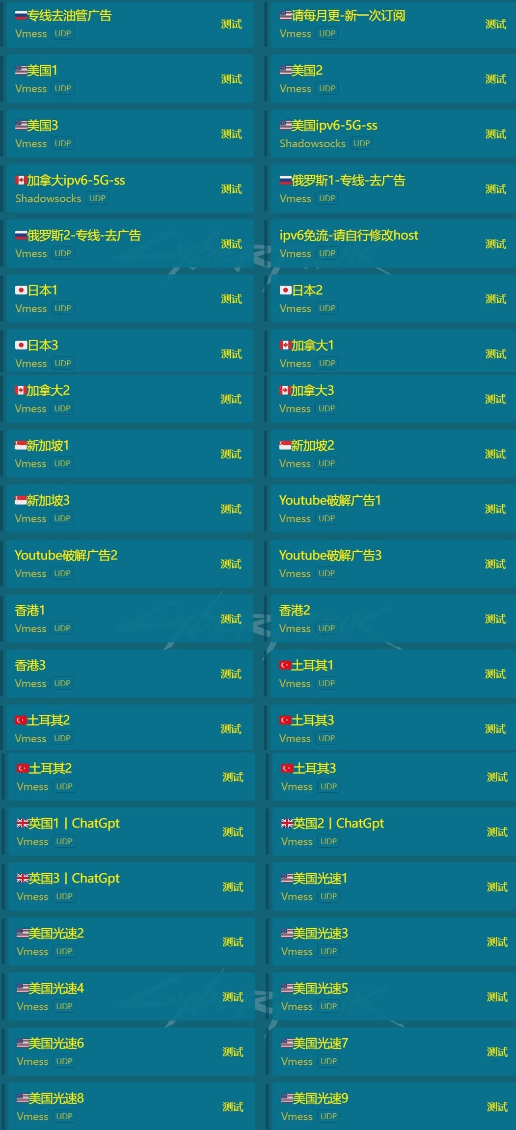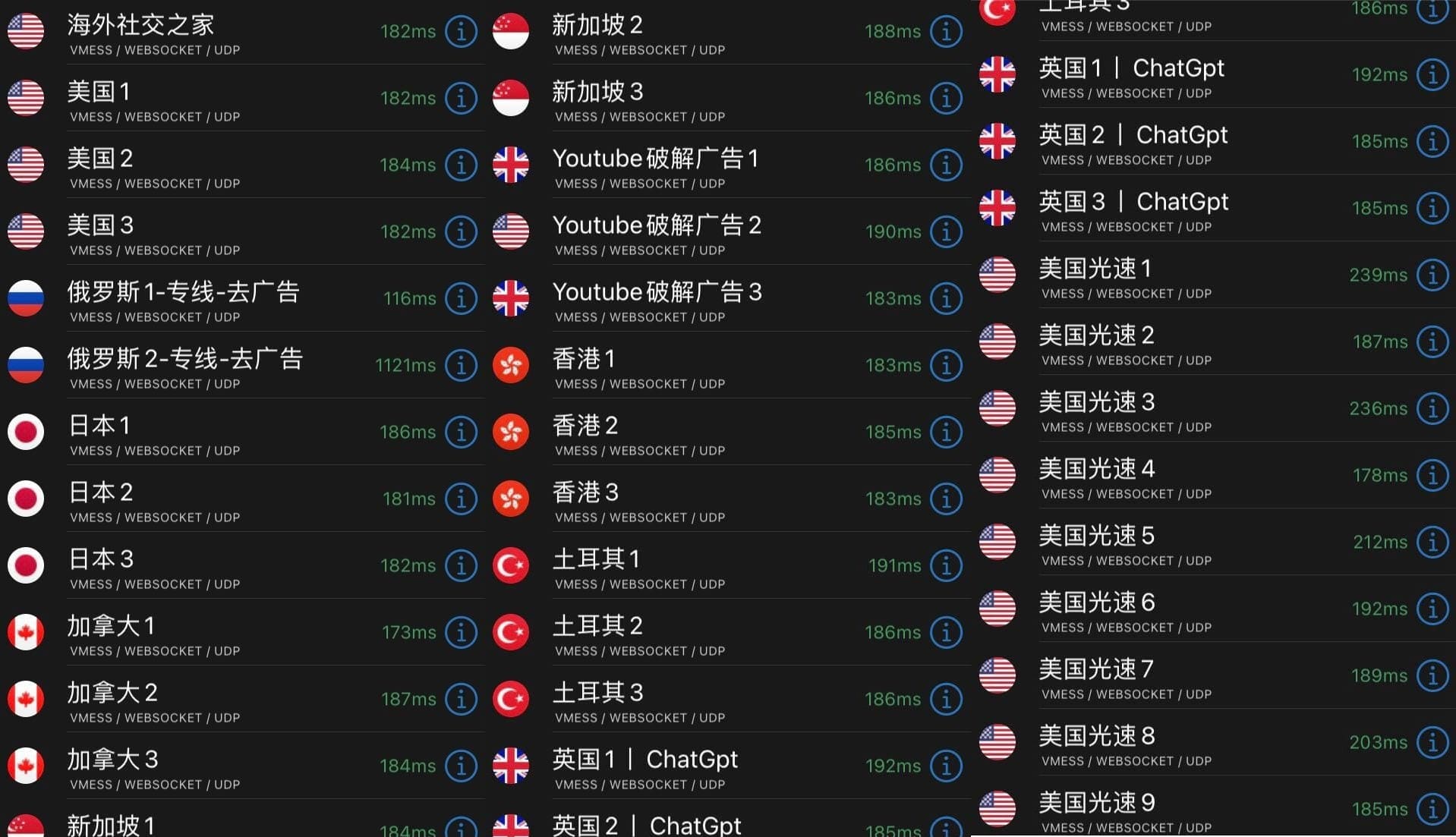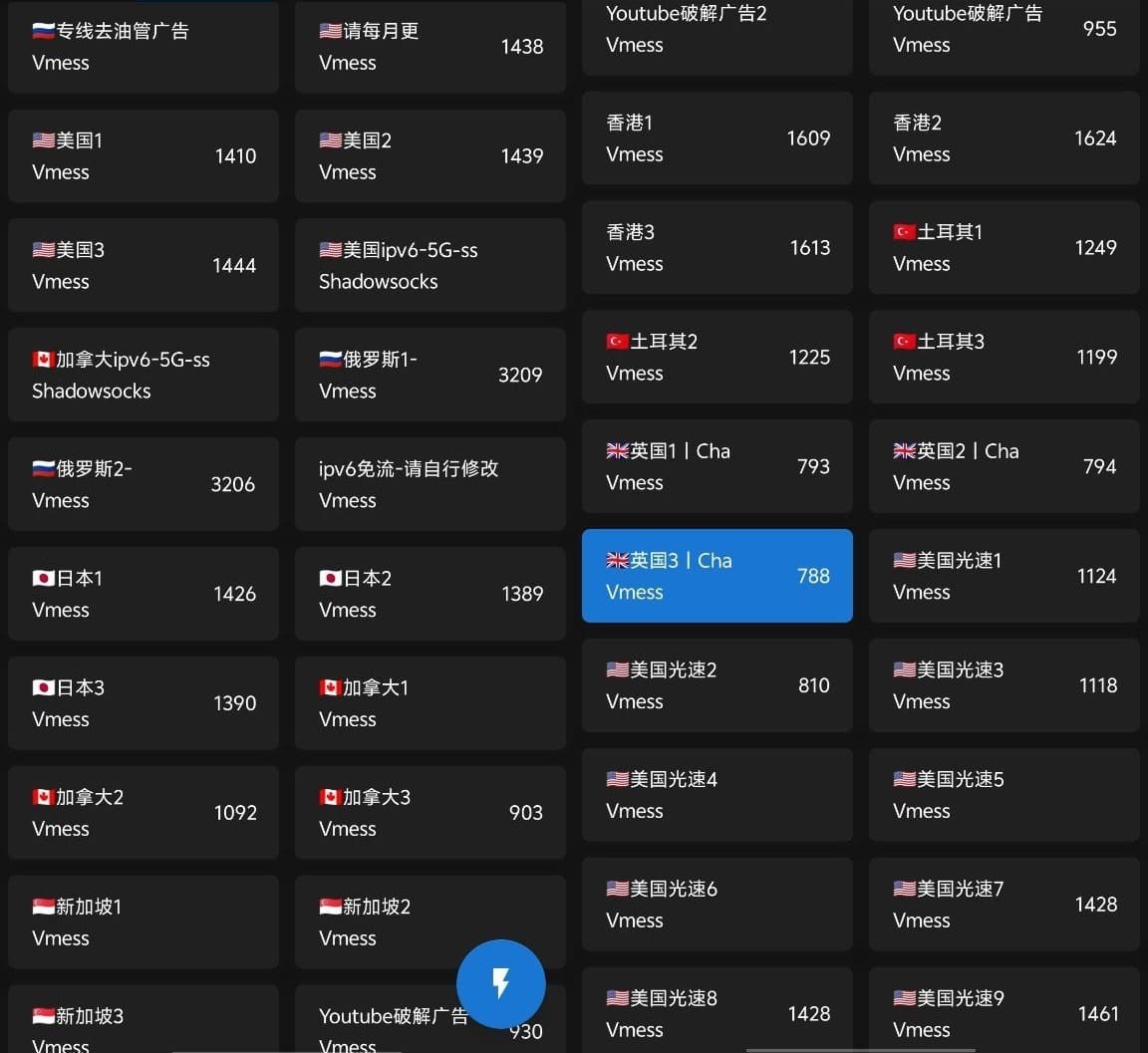本店“梯子/节点/上网工具”共包含30+国家地区,可以随意切换国家使用,选择哪个国家就代表你连接的就是哪个国家的网络,例如:选择美国,那么就是连接了美国的网络。【无限流量 - 无任何限制】